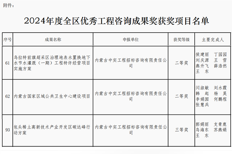 2025-04-167756 次2025年4月16日,内蒙古工程咨询协会公布了2024年度优秀咨询成果奖获奖单位名单,我司取得两个二等奖和一个三等奖,我司专业能力和服务质量再次获得行业的认可。此次获奖,不仅体…